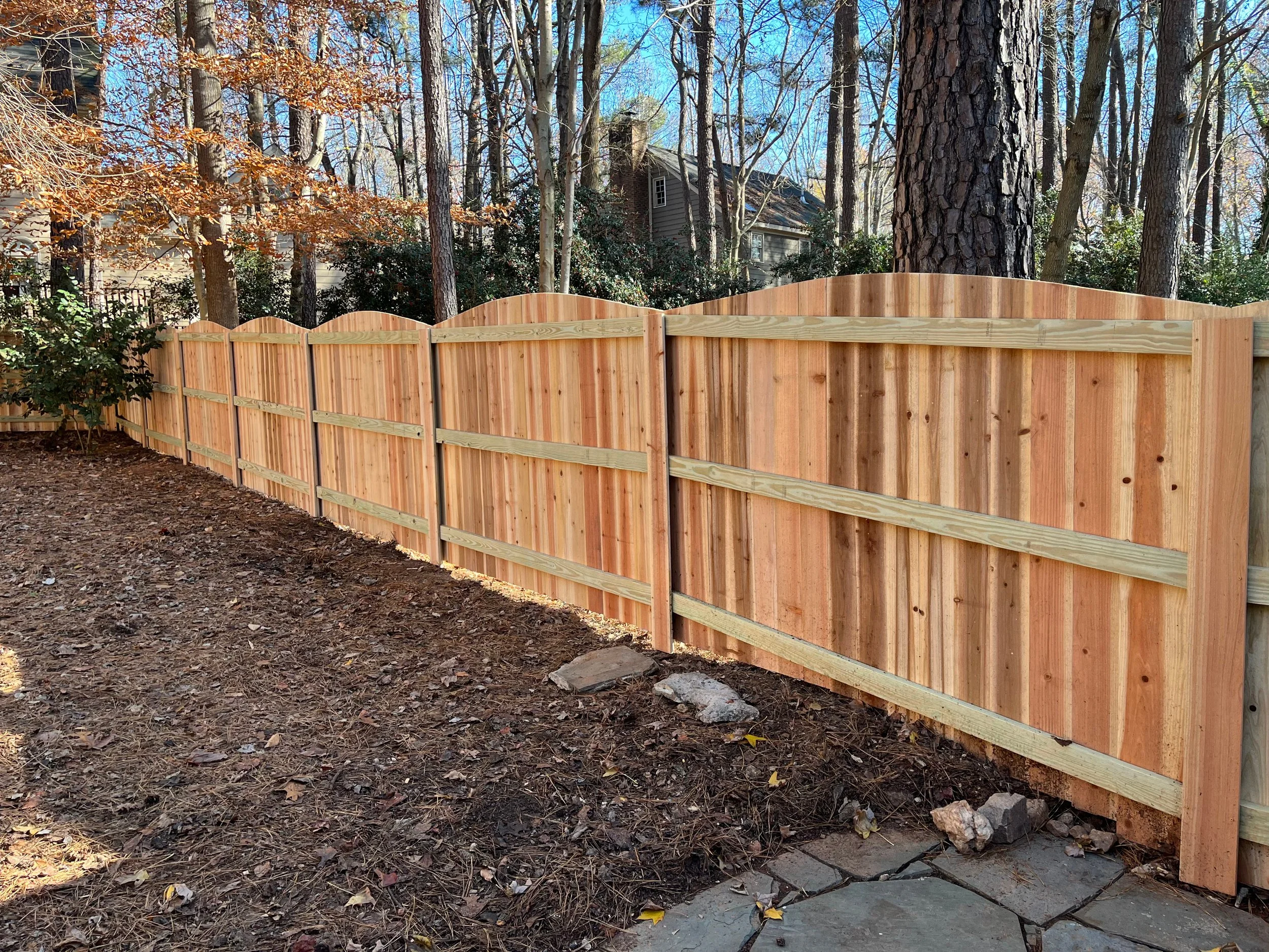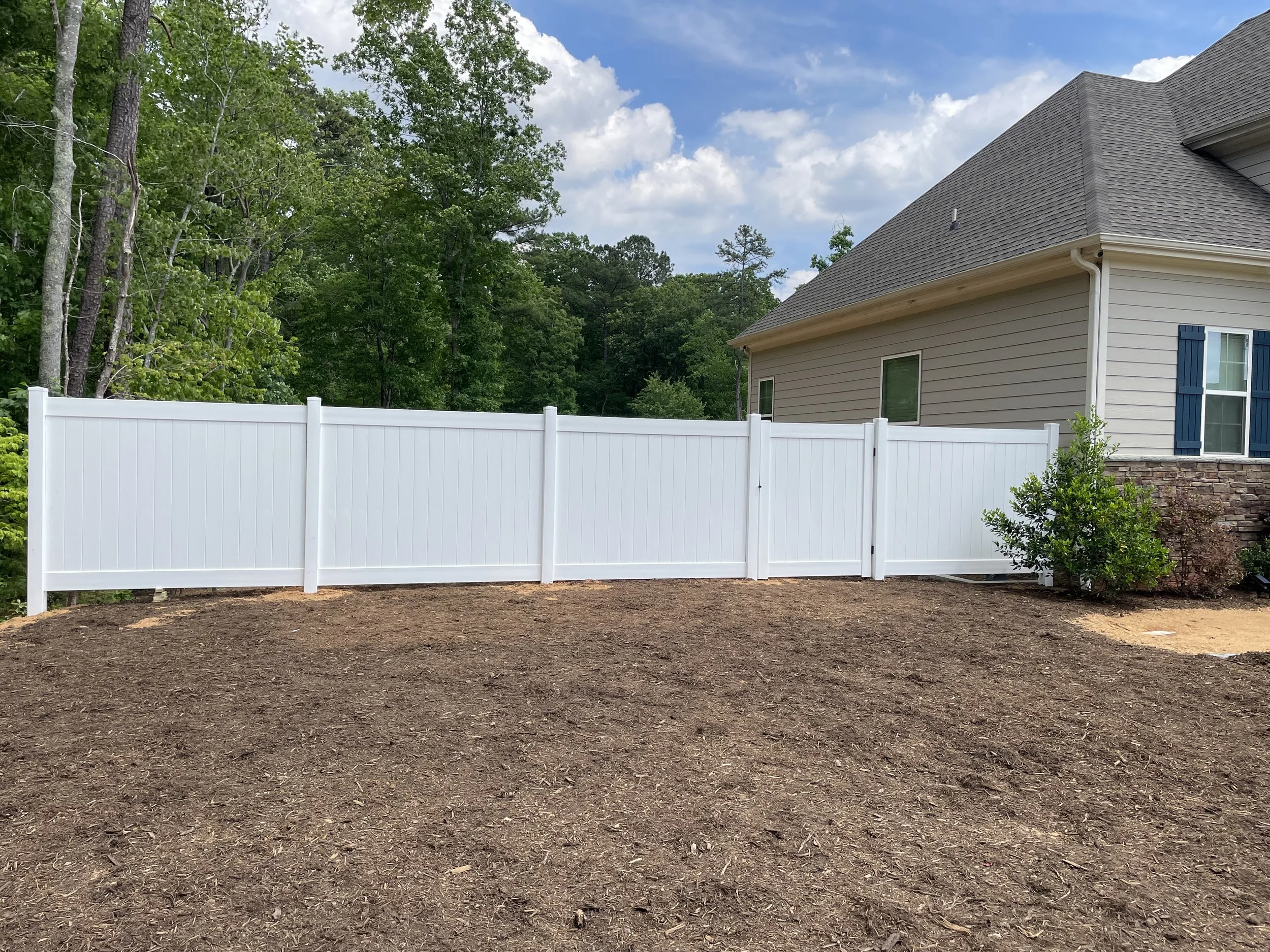 Vinyl fence is great for providing the look of a wood fence, but with less maintenance. Its strength and flexibility stands up great to weather, has an appealing look, and can be picket or privacy. Vinyl is very cost-effective, and will not wear with time the way wood does.